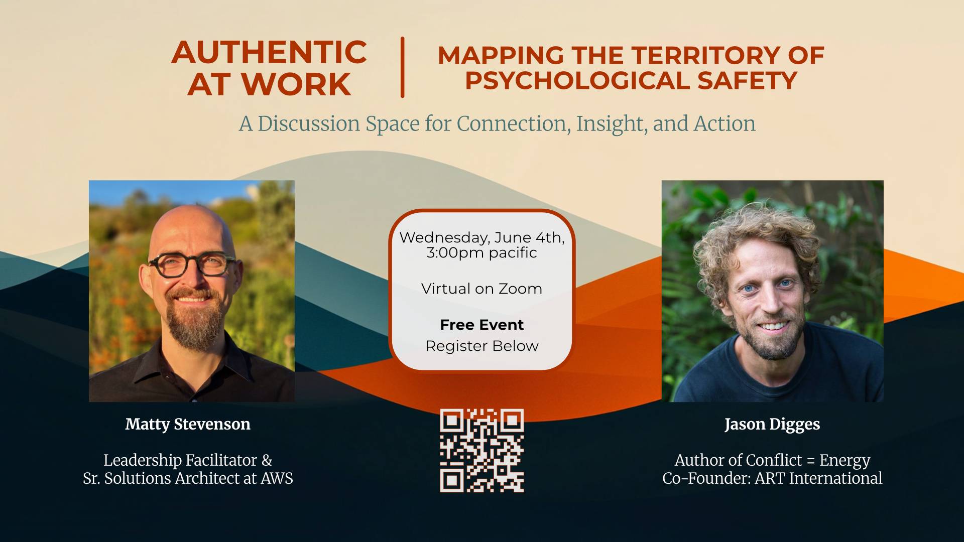 Next, I'm hosting a different kind of event on June 4th where we're taking a look at the concept of psychological safety. This is something that can be relevant almost anywhere, but is especially relevant in many workplaces. The problem: we're often told at our jobs that it is safe to speak our minds and to take risks, yet the reality is it still feels, or is, unsafe for many to do so.